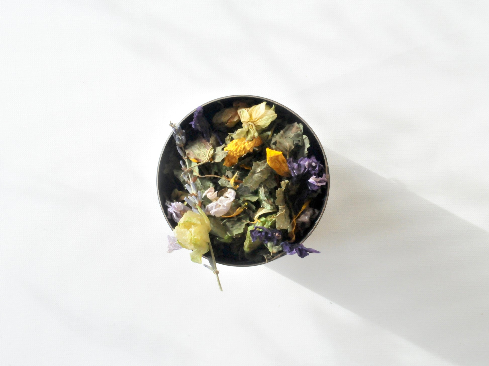 Hopfen, Lavendel und Zitronenmelisse schenken Ruhe und Gelassenheit, während Calendula, Sonnenblumenblüten, Malven und Löwenzahnblüten nicht nur farblich den Sommer konserviert haben, sondern dank ihrer Flavonoide und Polyphenole auch zellschützend, entzündungshemmend und stressreduzierend wirken.